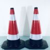 Chân đế cao su nặng tạo độ ổn định, giữ cọc tiêu đứng vững ngay cả trong điều kiện gió mạnh hoặc môi trường ngoài trời khắc nghiệt.